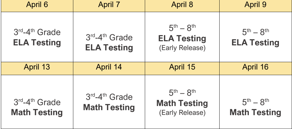 We hope you had a wonderful 3 day weekend! We are in full swing with testing this week and next week. Our 3rd and 4th grade students are finishing up reading today and our 5th-8th graders will be taking the reading test Wednesday and Thursday. It is critical your child arrives at school on time on their testing day.